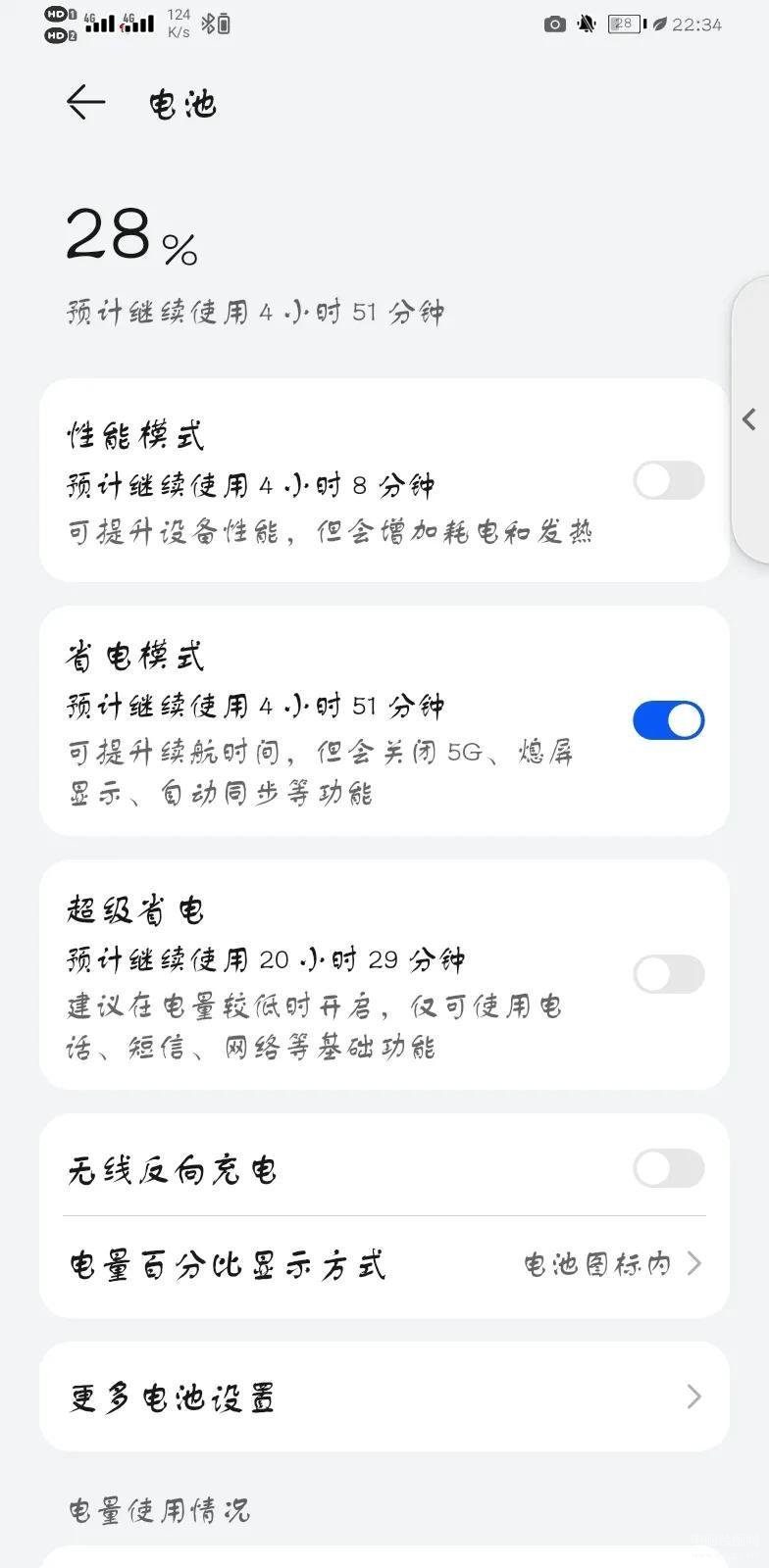 铁子们,不知道你们使用华为手机是不是经常会有这么一种现象,那就是当手机电量较低(比如低于20,30甚至40)时,手机会莫名其妙变得特别卡,切换多任务,打开应用等都变得体验极差,本人也是深受其烦,但是经过我多次实验,摸索,我发现,要解决这个问题,有两种方法,下面我为大家介绍: