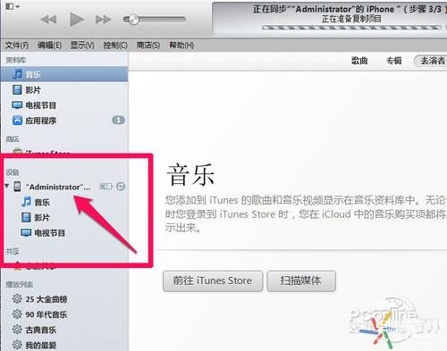 步骤二、手机连接电脑并打开已经安装好的iTunes,进入iTunes store