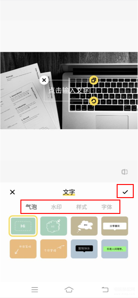 第三步:输入水印内容,随心选择气泡、水印、样式和字体进行编辑,最后点击保存就完成操作了。