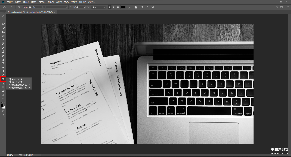 步骤二:右击图片左侧文字工具,选择【横排文字工具】,在图片右侧框中设置字体、颜色以及透明度,最后输入文字;