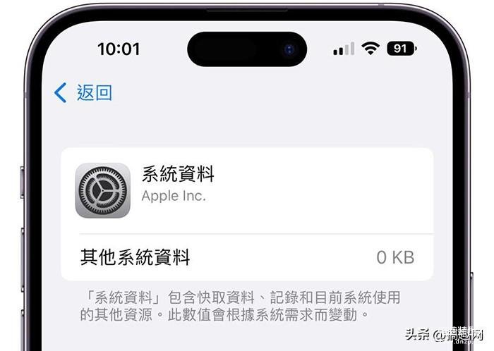 步骤 3. 通过 iOS「设置」内选择「通用」>「iPhone储存空间」,滑到页面最底点选「系统数据」来检查,就会发现「其他系统数据」会瞬间被清除归 0KB。