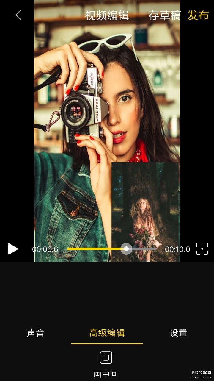 特效编辑中【画中画】功能可以做什么呢?这么说吧,你可以在你的视频中添加另一个视频或添加图片,在原视频播放的同时,你所添加的另一个视频也会进行播放,视频的位置可以随意移动。