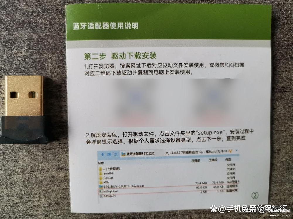 将购买的蓝牙适配器插在台式电脑上面,根据蓝牙适配器使用说明书(如果没有说明书可以向售卖商家索取),下载并安装好驱动。