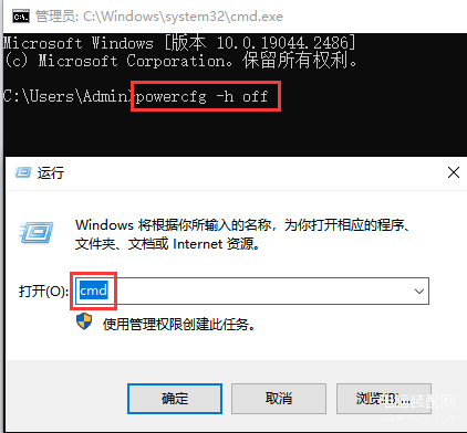 输入【powercfg -h off】命令,按下【Enter】键即可关闭休眠功能,同时也会删除休眠文件。