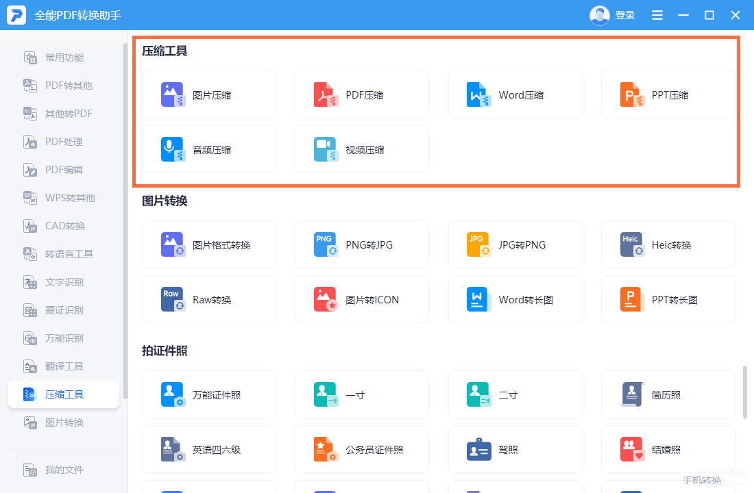 如果不想先解压再使用文件,我们可以用【全能PDF转换助手】直接对文件体积进行压缩。它支持压缩多种文件格式,例如:视频、音频、图片、PDF文件等。