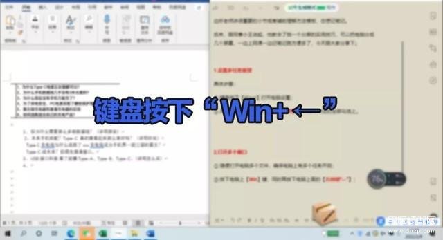 2、按下电脑上【Win】键,同时再按下电脑上面的【方向键“←”】。