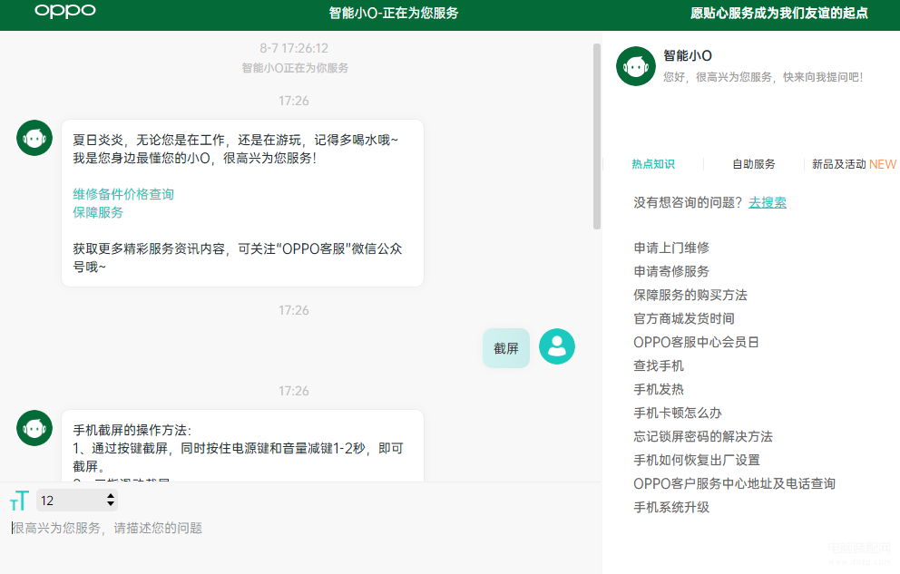 此外,OPPO还通过简化入口操作、优化服务流程等方法减少用户时间及精力成本,全面提升服务质量及效率。更有智能化服务全面覆盖线上渠道,小欧智能客服7*24小时在线,可实时解决大部分用户的问题解答需求。例如,在OPPO官网,找到在线咨询入口,在对话框输入“截屏”,就能立刻收到小欧智能客服提供的操作方法的详细教程。相信有了智能化服务和贴心人工服务的加持互补,解决用机问题,不再会是OPPO用户的难点。