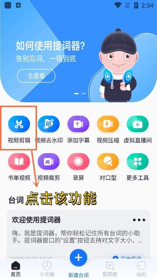 在应用市场下载app并打开,在首页我们就能看到【视频剪辑】功能啦,点击进入;