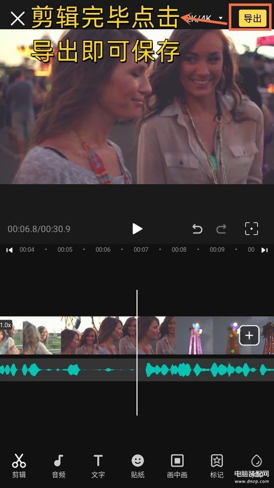 待视频全部剪辑完成,点击【导出】就可以对视频进行保存啦。