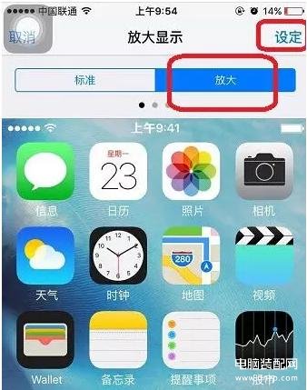 然后选择「放大」功能,再点击右上角的「设定」,如下图: