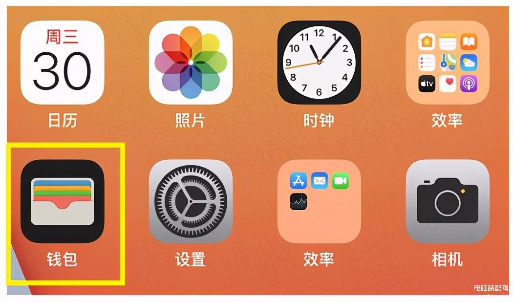 1、在苹果手机系统中找到“钱包”应用,点击进入。