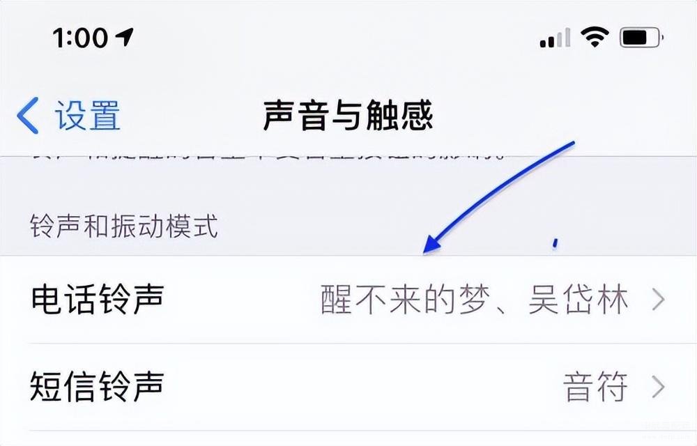 6. 最后,进入iPhone手机【声音与触感】设置,点击【电话铃声】,找到制作的铃声选择【设置】即可。