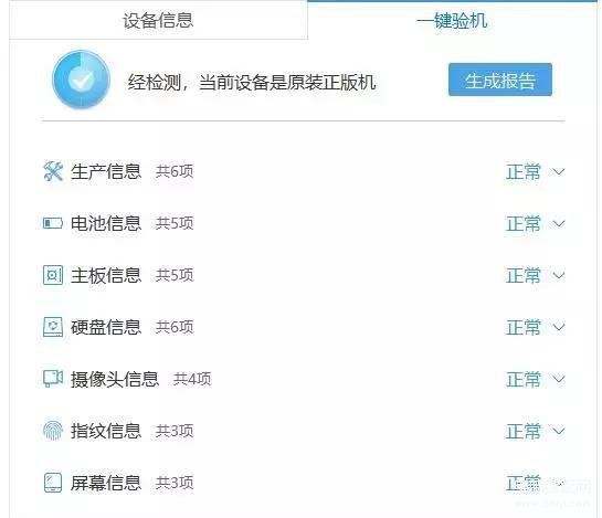 假如说一些配件被更换了,也能够通过助手软件检测出来。例如:主板、电池、摄像头、屏幕等。