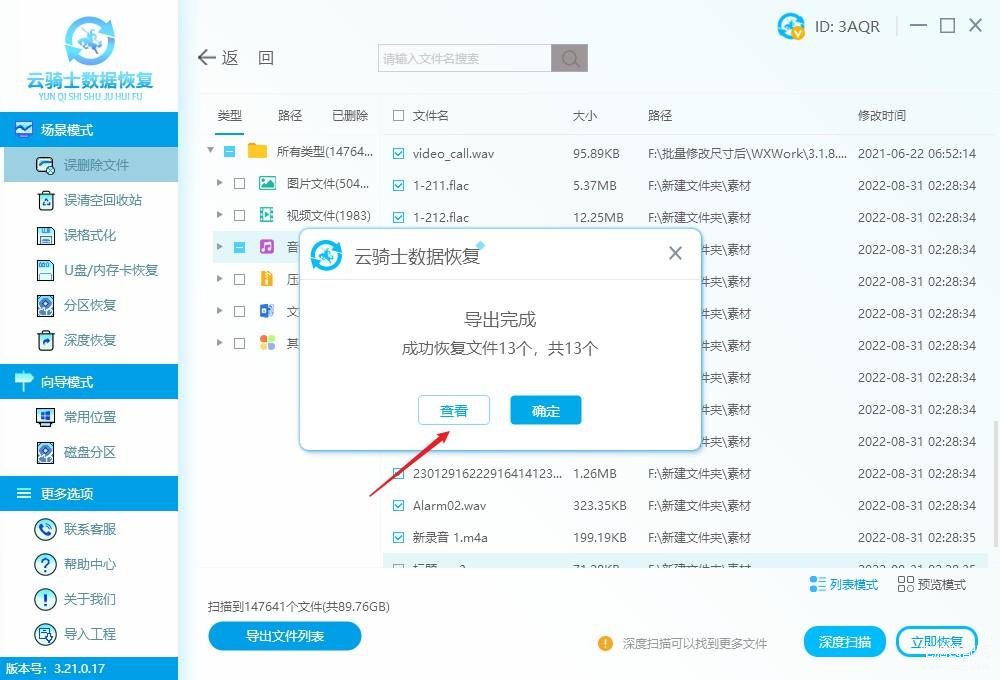 如果使用上述两种方法都无法成功将录音文件找回,这时借助专业的数据恢复软件很有必要,数据恢复软件推荐使用云骑士数据恢复软件。