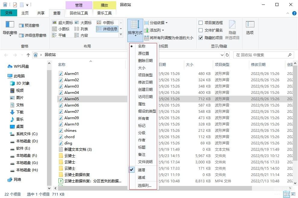 提示:使用该方法的有效前提是,录音文件没有被电脑永久删除(shift+delete),近期没有清空回收站与未设置文件删除后不移入回收站的功能。