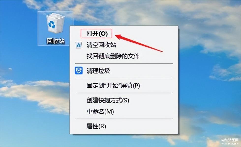 针对电脑中误删除录音文件的情况,这时我们可通过回收站恢复,在桌面找到回收站用鼠标右键点击选择打开,或者直接双击打开。