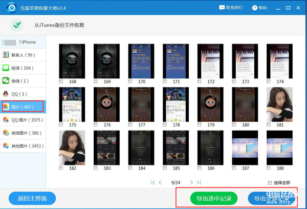 4、等待软件扫描完成后,我们点击“图片”即可在软件界面查看手机照片,将想要恢复的照片勾选出来,点击“导出选中记录”就可以恢复照片了。