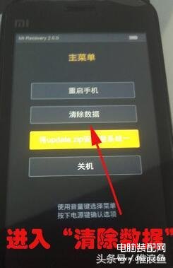 小米1S:按着音量+键 开机 会进入刷机界面 有个清除数据 进去后 音量键 选择上下 开机键是确定