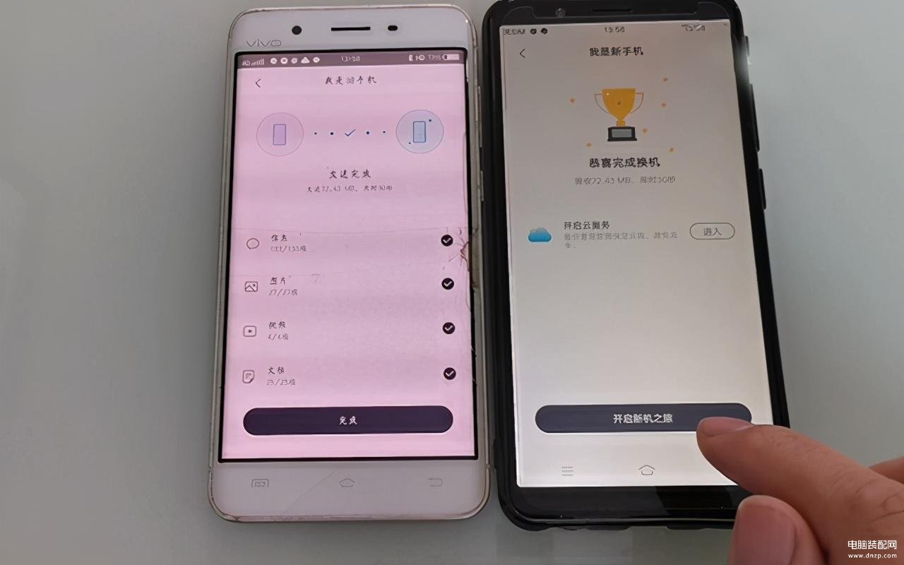 5、旧手机的资料导入到新手机后,在新手机上点击【开启新机之旅】,我们同时查看新手机与旧手机,检验是否有遗漏的数据。