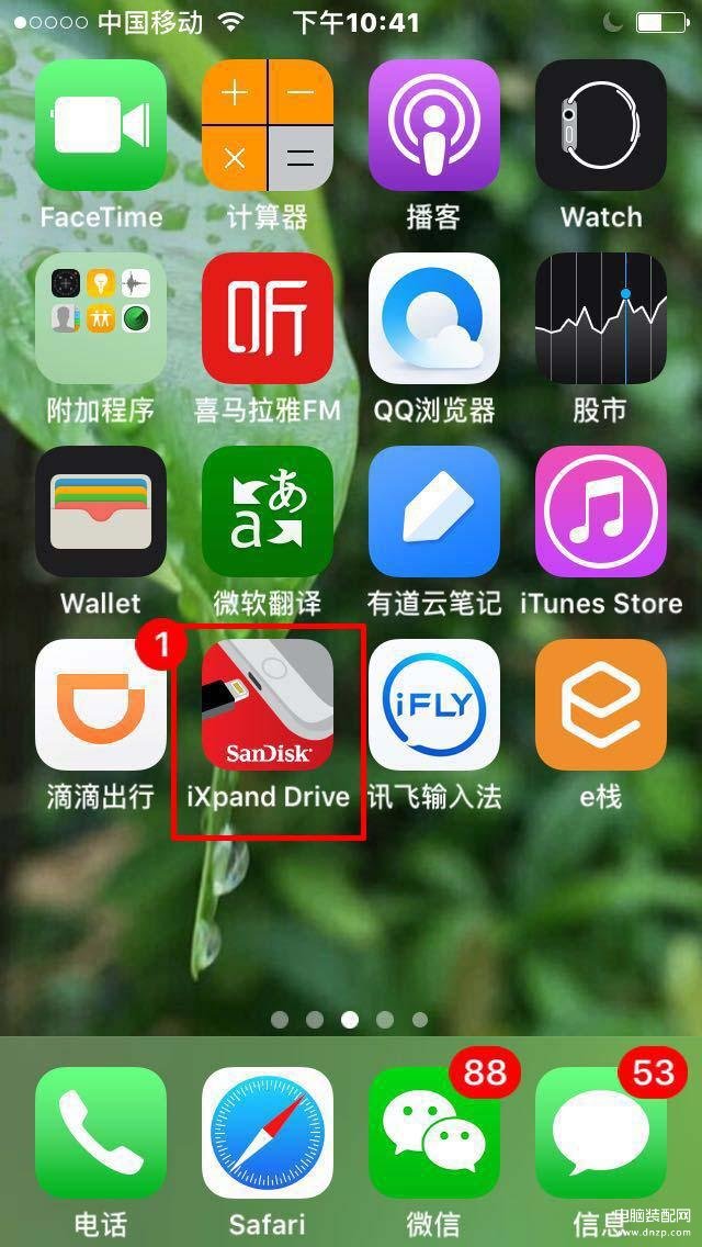 1.首先把U盘插入手机的数据线接口。第一次插入U盘时,会提示安装一个软件(驱动程序)。本文范例U盘是闪迪的。那么应该是这个:iXpand Drive。