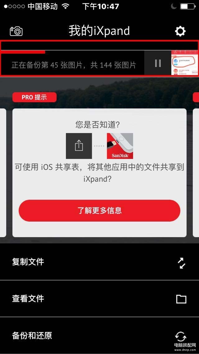 5.然后你会看到屏幕顶部出现进行照片备份的进度条。