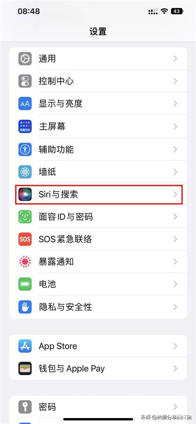 1、轻点主屏幕“设置”,下滑并找到“Siri与搜索”。