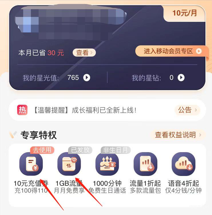 这个会员里包含了一张10元充值券,还有每月1个G的流量。这样就是18元你就拥有每月30分钟通话和1G流量(接下来的流量需要每月进app领取)