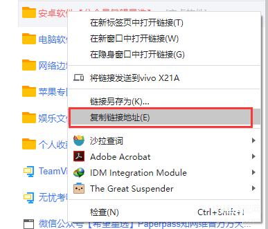 首先我们右击要上传文件的文件夹,选择复制链接地址: