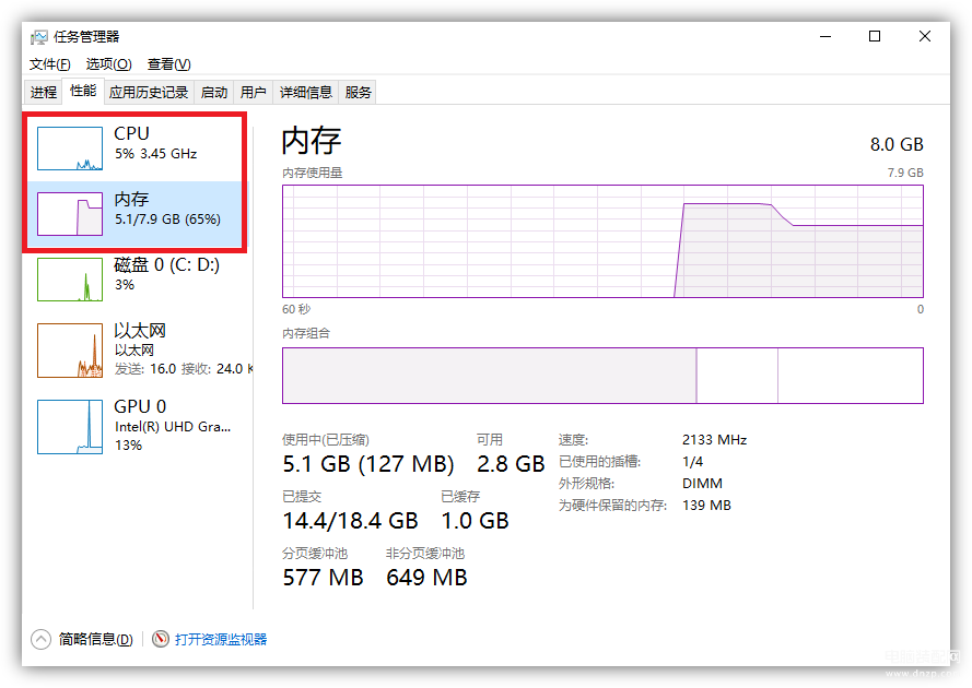 内存、CPU占用过高,就会导致的电脑卡顿,按下快捷键【Ctrl+Alt+Delete】,打开任务管理器,点击【性能】,查看CPU和内存的使用率。