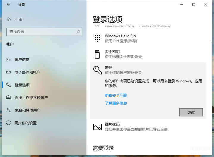 3、在登录选项内找到右侧的密码,然后点击展开,点击更改。