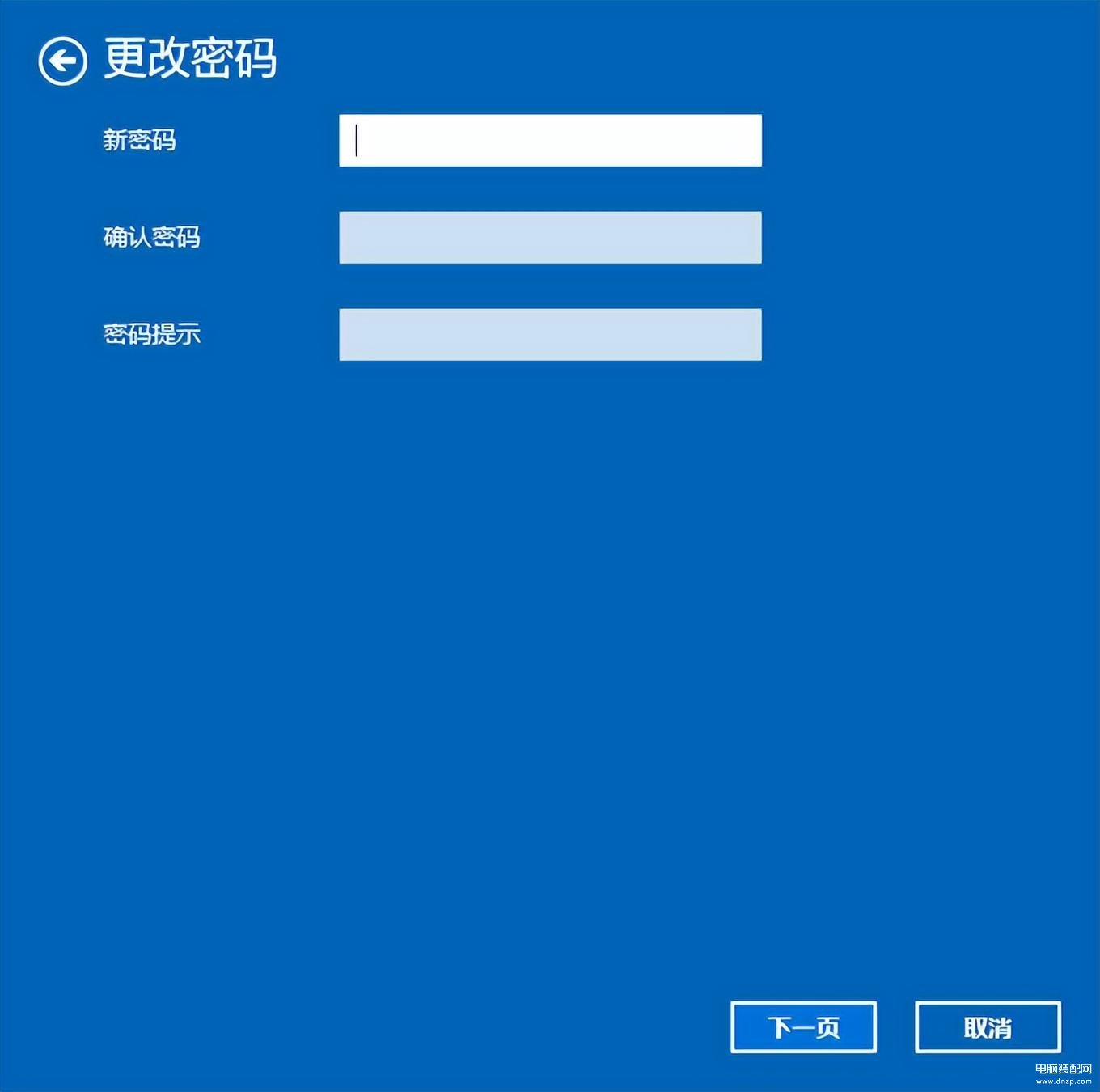 5、接着输入我们需要更改的新密码就可以了,输入完成后点击下一页,根据提示重启计算机即可。