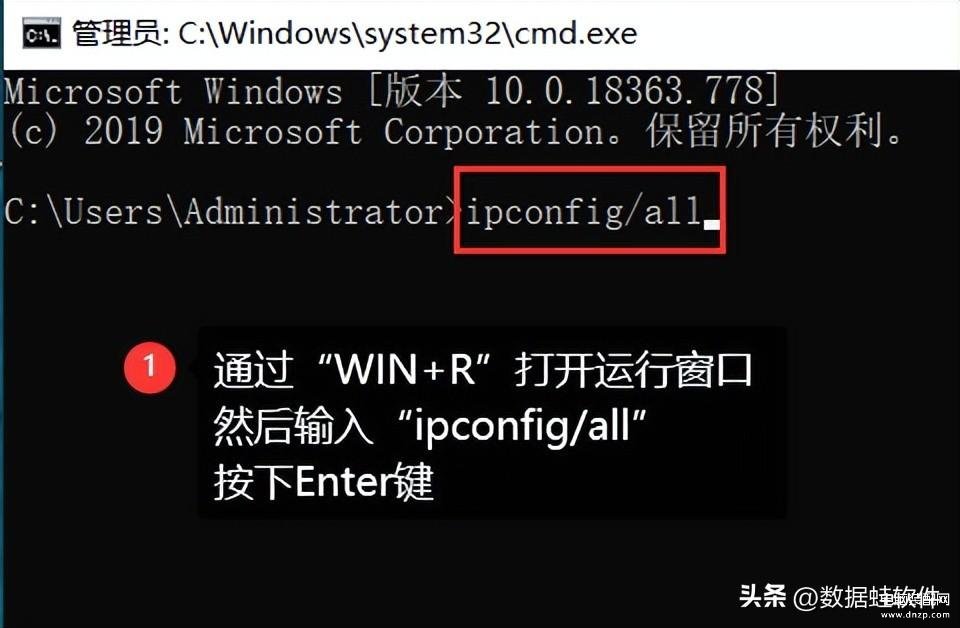 步骤1:在电脑键盘上同时按下【Win+R】,在弹出的窗口输入【cmd】并点击【Enter】就可以打开管理员窗口。在图中,输入内容【ipconfig/all】,再按下【Enter】键;