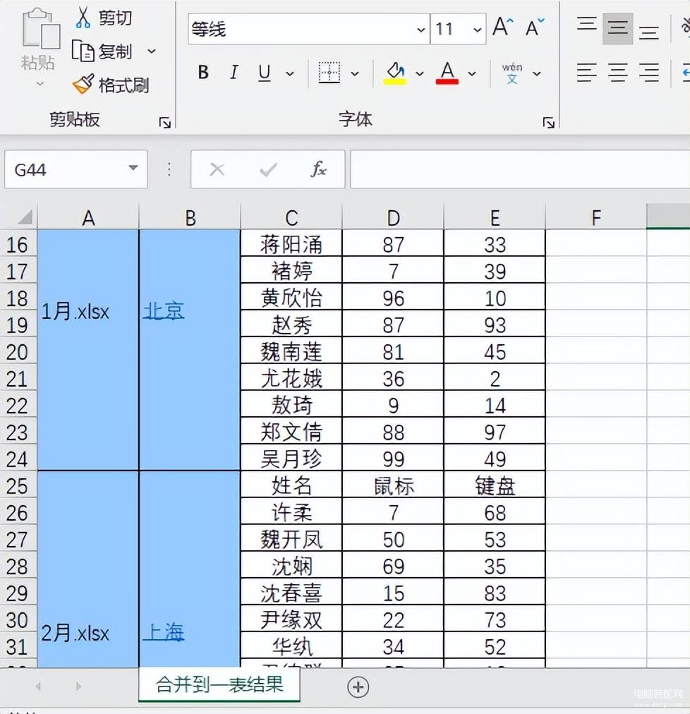 1.如有下图有两个excel工作簿,每个工作簿分别有两个表格。现在我们想要将这个四个表格快速合并到同一个工作表中。
