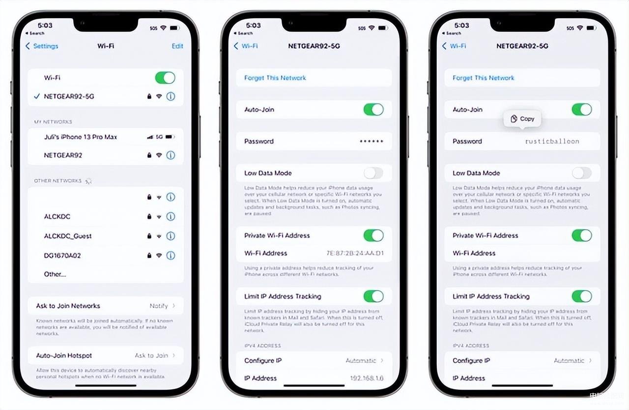 不过,最新发布的iOS 16更新包含了一系列的的细节改进,其中一项就是终于支持查看当前连接的WiFi网络密码了,大大提升了用户的WiFi连接体验。