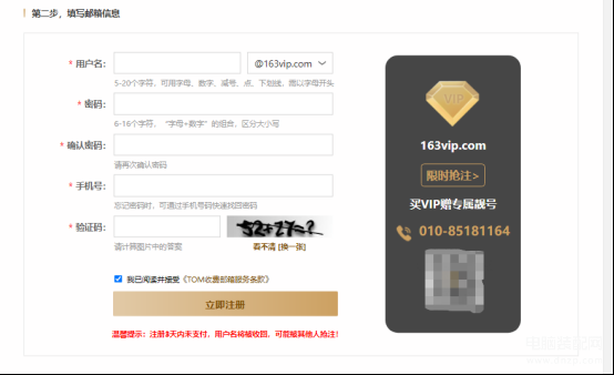 4.邮箱基本信息需要填写完毕后-点击立即注册后开通成功哦!