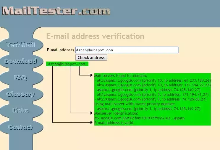 在使用Interseller验证工具之后,再用Email Checker工具检查一下,然后你可以再用一款名为MailTester的简单工具来确认这个邮件地址目前是否真的存在。