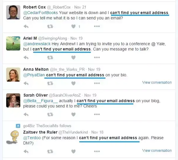 那么,找到这些电子邮件地址有多难? 在Twitter上搜索“can't find your email address”,你就会明白了。每秒钟都有数不清的人找不到电子邮件地址: