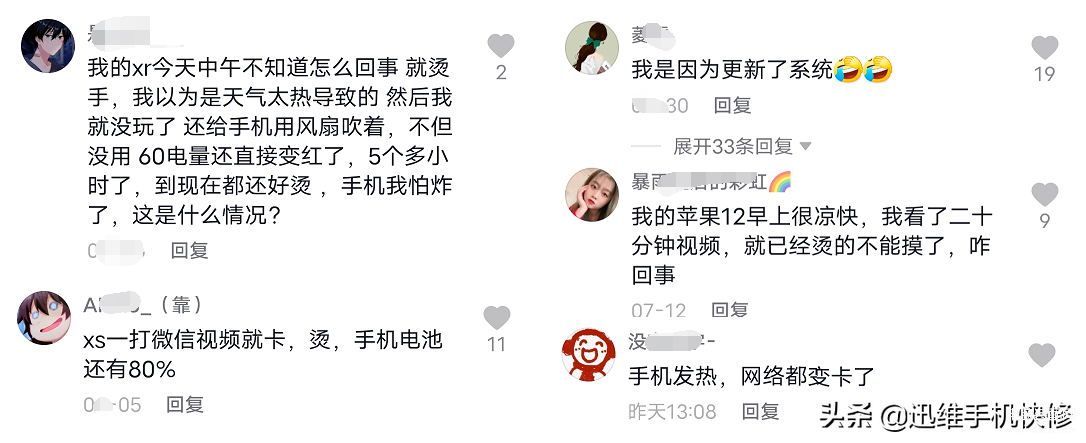 3、 硬件设计以及外壳材料问题:如iPhoneX/XS系列,11系列、12系列采用的双层主板设计,虽然节省了内部空间,但却大大降低了散热能力。另外,这些机型大部分采用不锈钢边框材质,虽整体提升了抗摔能力和手感体验,但降低了手机内容散热效果。