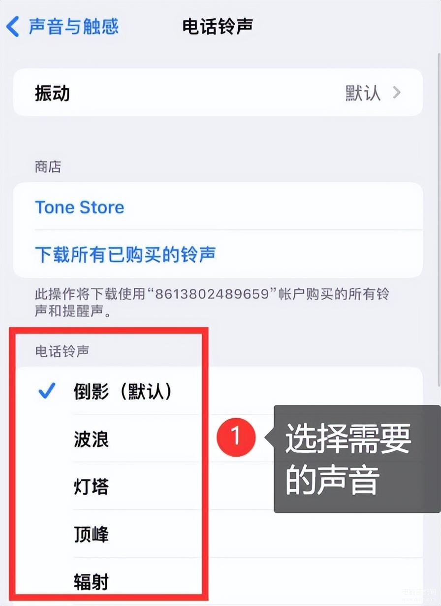 步骤4:在【电话铃声】的界面,选择设置你需要的来电铃声吧。