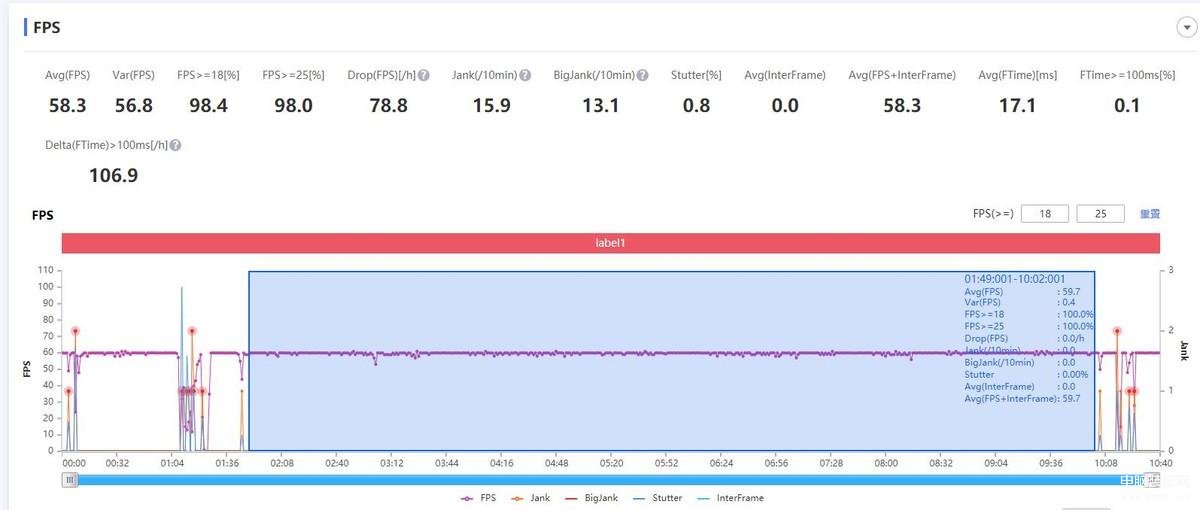 《王者荣耀》的极致画质下运行“梦境大乱斗”模式,平均59.7帧,运行稳定。