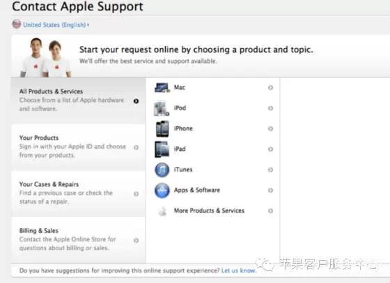 拨打1-800-APL-CARE (1-800-275-2273)后,你将进入自动系统,如果问题无法解决,系统再转接至人工服务。如果你不喜欢使用自动系统,这种方式可能不适合你。