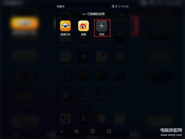 2、在【已隐藏的应用】界面即可看到您已经被隐藏的应用,如果您的应用没有被卸载只是隐藏了就可以在这里看到;接下来我们点击【添加】进入编辑模式;