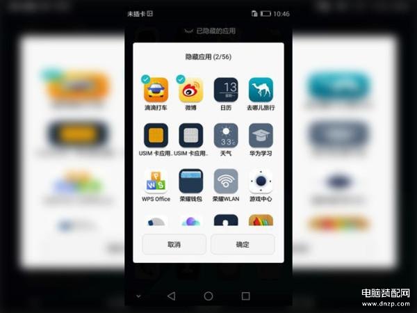 3、点击需要恢复显示的应用,一般隐藏了的应用左上角会有一个【√】,选择好之后点击【确定】,回到桌面即可看到隐藏的应用图标已经恢复;
