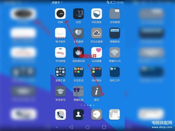 1、首先在桌面使用两指分开的方式,和平时两指放大的手势一样将其分开进入【隐藏应用】的界面;