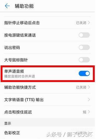 如果你听音乐或看视频时,觉得声音有点小怎么办呢?在手机桌面上点击“设置”-“高级设置”-“辅助功能”,可以看到一个单声道音频,打开单声道音频,就可以增大音量。
