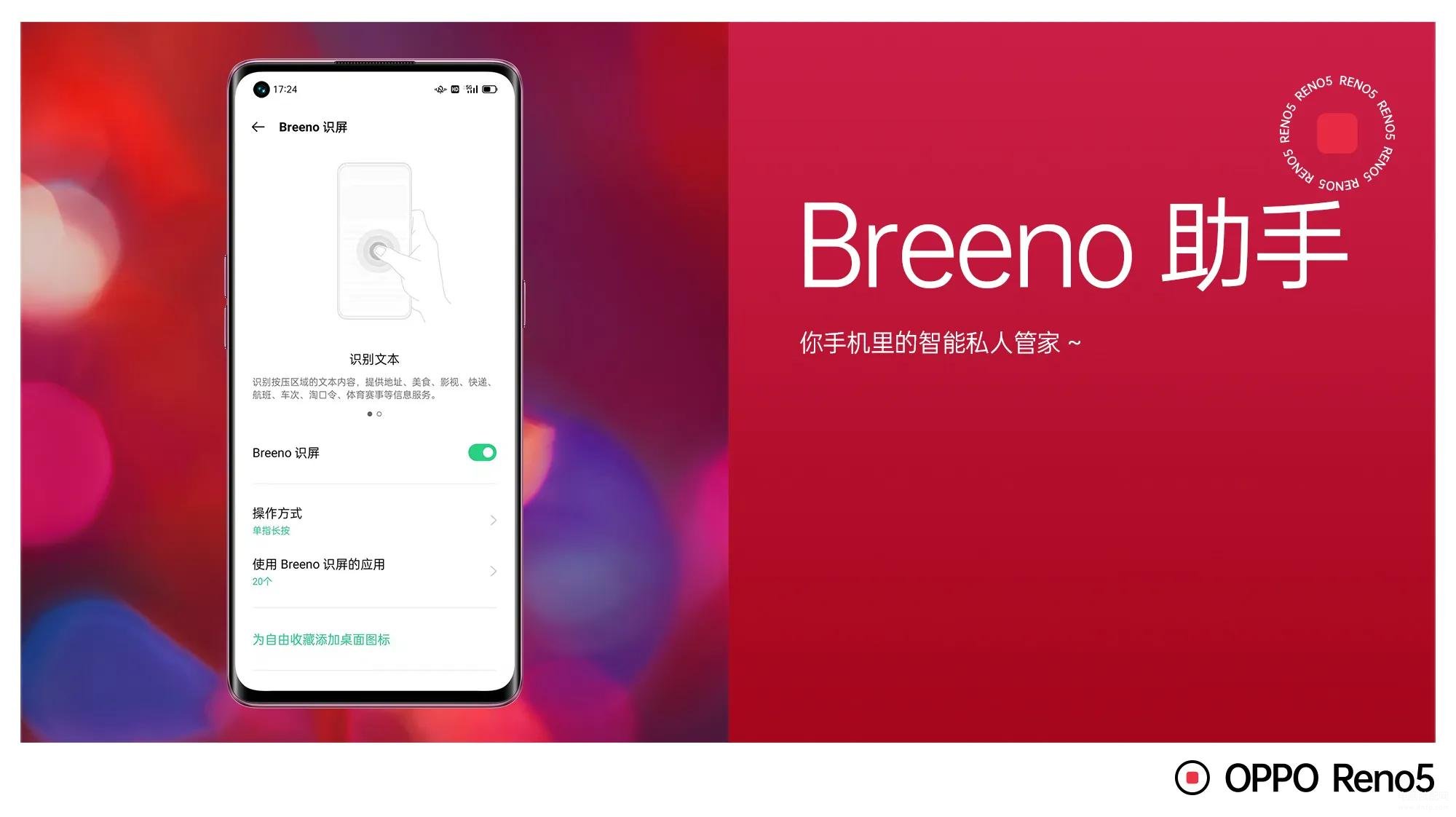 现在很多手机都配备了智能助手,比如小米的“小爱同学”,华为的“小艺”还有苹果的siri等,OPPO手机也有属于自己的智能助手——“Breeno”,只要呼唤它的名字,它便可以解放你的双手,便利你的生活。从此以后,你就有了一个上知天文下知地理的好伙伴,一个贴心温暖准时靠谱的好管家,下面,让我们以OPPO最新发布的Reno5系列手机为例,一起来看看OPPO手机的Breeno智能语音助手都支持什么样的功能吧!