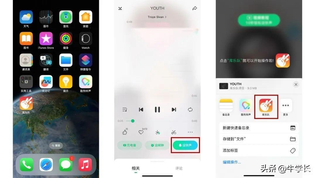 2、自定义铃声必须导入到 iPhone 自带铃声库之后才能使用,也就是要库乐队APP的原因。