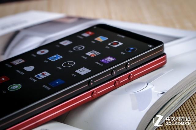 坚果Pro2上有两个让人眼前一亮的设计,其一便是穿过手机边框的那条金线,坚果Pro2共有三种颜色,分别为碳黑色、酒红色和浅金色,而这三种颜色的手机都有这一条细细的金线。第一眼看过去,纤薄是这条细线带来的观感。