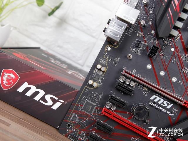 微星B360 GAMING PLUS提供了两条全尺寸的PCI-E插槽,第一条上还加装了金属护甲,另外还有四条PCI-E X1扩展接口可供使用。