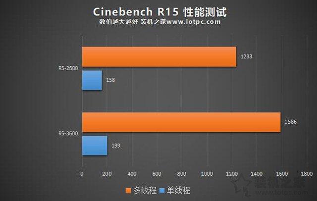 CINEBENCH R15这款专业测试软件,其考验的是CPU的渲染能力,新一代锐龙R5-3600在单线程分数在199,而多线程分数在1586,而上一代锐龙R5-2600单线程分数在158,多线程分数在1233,R5-3600在单线程和多线程分别领先了20%、22%。